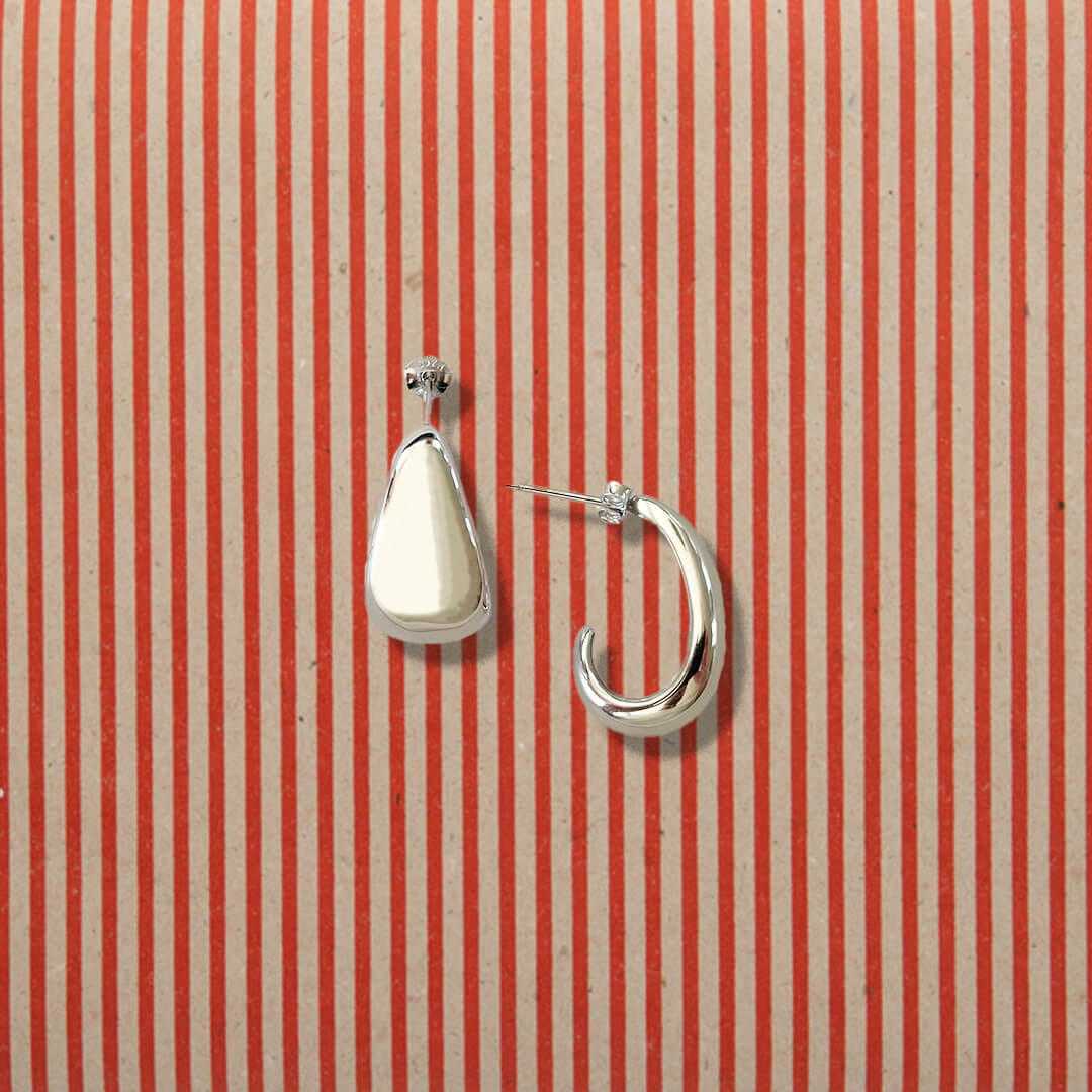 Adèle Earring är ett par stilrena bolded örhängen med modern känsla och subtilt statement-uttryck. Tillverkade i platinapläterad 925 sterling silver, kombinerar de elegant glans med skulptural form. Den asymmetriska designen – ett örhänge i mjuk droppform och ett i böjd, svepande siluett – ger ett harmoniskt men uttrycksfullt helhetsintryck. Perfekt för dig som vill bära något unikt, men ändå stilrent.