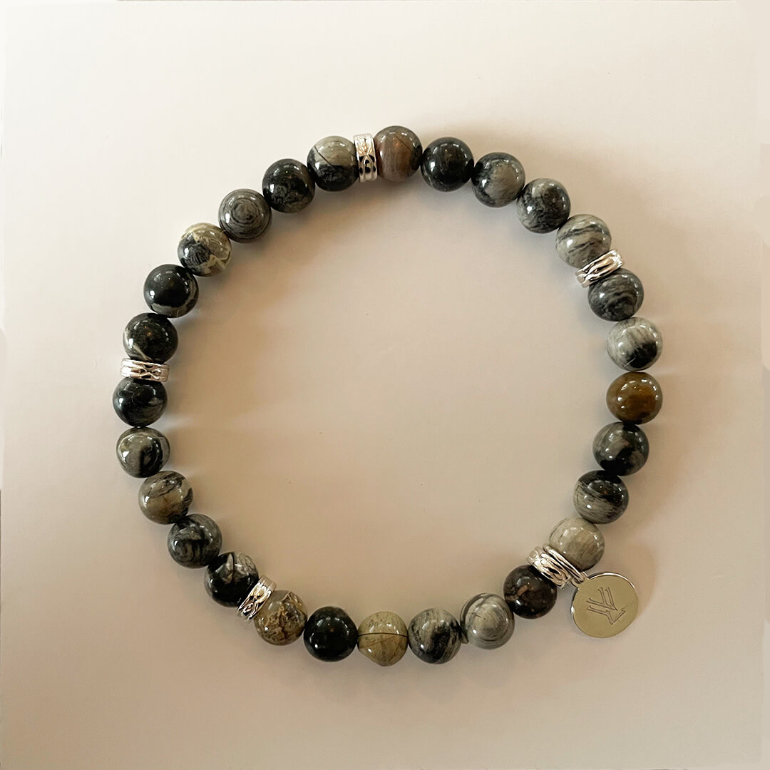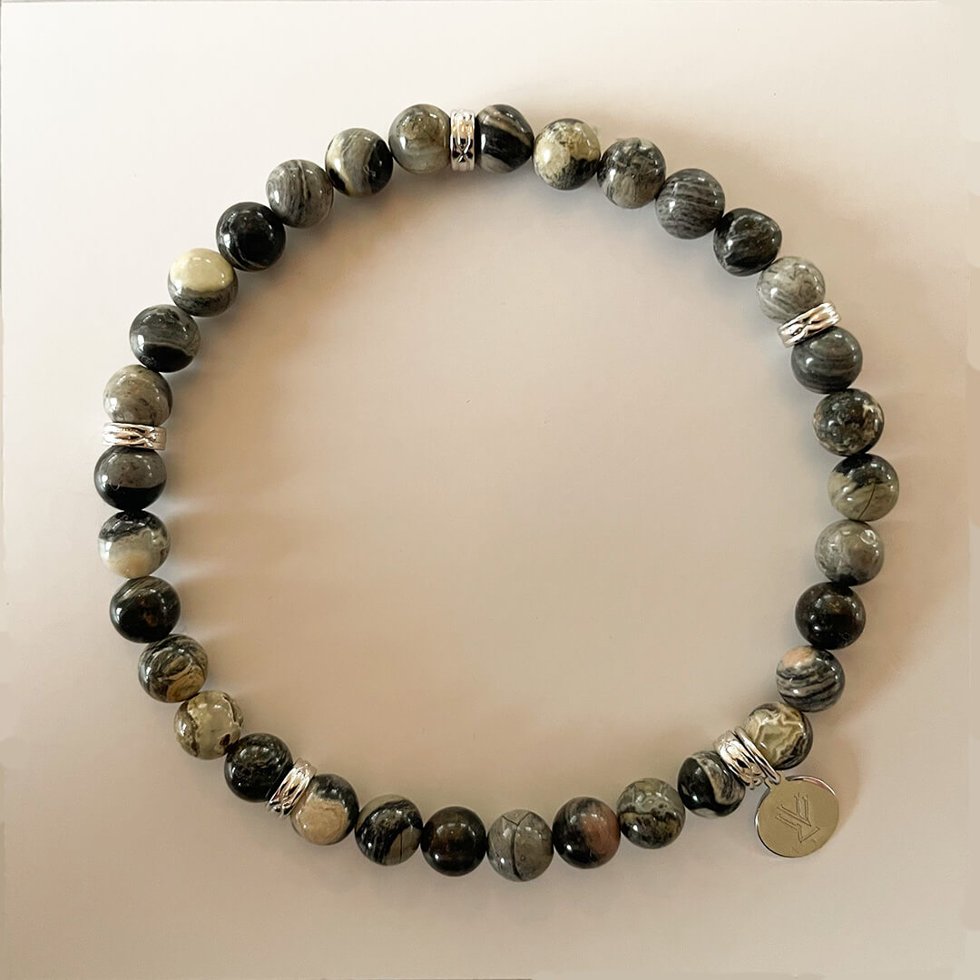 Silver Leaf Jaspis förknippas med balans, stabilitet och inre styrka. I kristalltraditionen sägs den hjälpa bäraren att hitta lugn även i förändring. Den symboliserar naturens rytm och påminner om att styrka och stillhet ofta går hand i hand. Därför bär många stenen som en påminnelse om att lugnet alltid finns inom räckhåll.