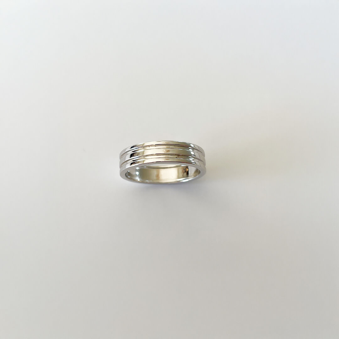 Cassian Ring är en stilren randig ring i rhodiumpläterad 925 sterling silver, skapad för dig som söker subtil elegans och modern design. De två horisontella ränderna längs ringens yta ger smycket en distinkt karaktär – stilren men ändå iögonfallande. Det är ett smycke som känns lika genomtänkt som lättburet.
