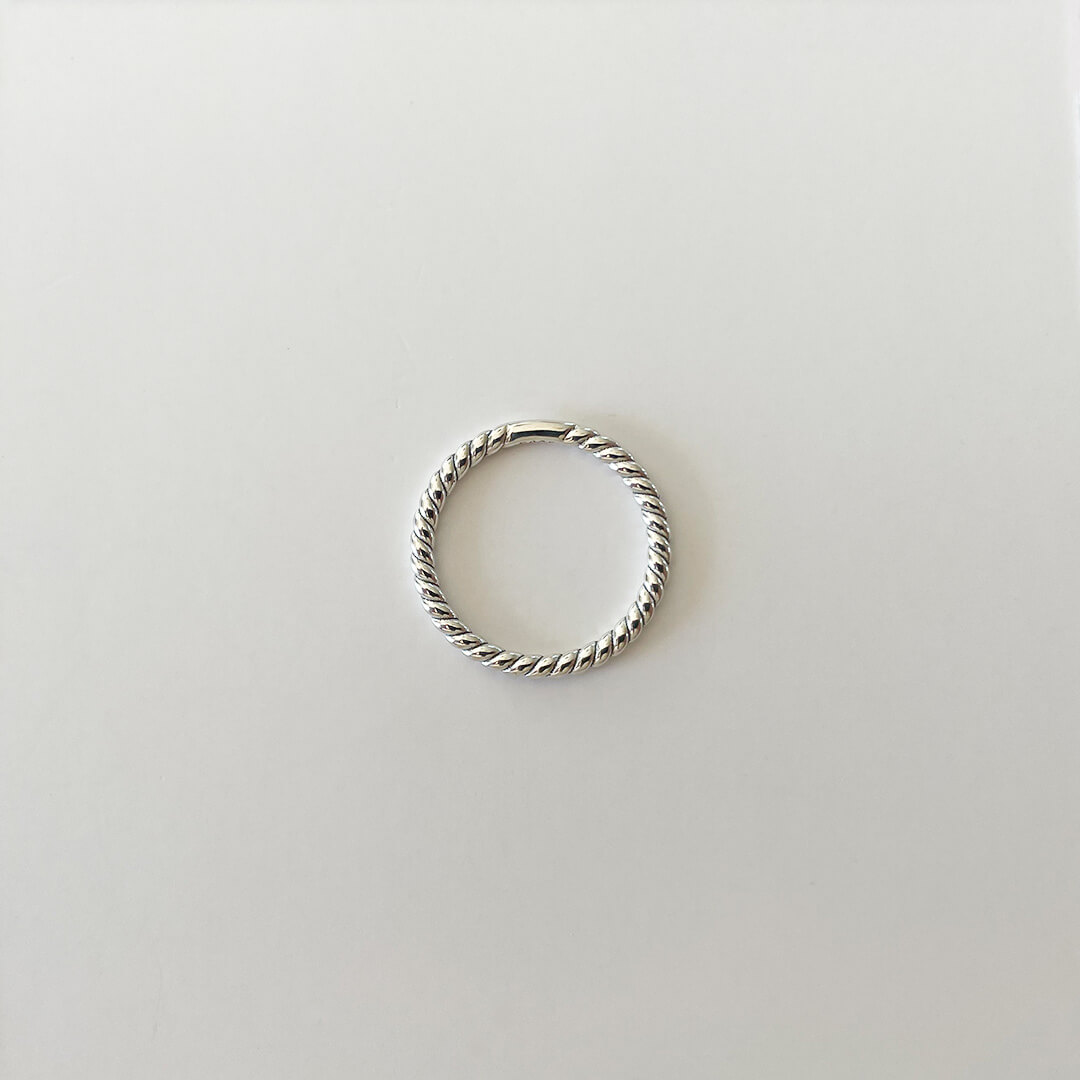 Designen är inspirerad av klassiska tvinnade former, men med en modern twist. Mönstret skapar ett levande uttryck som fångar ljuset på ett elegant sätt. Trots sin nätta storlek är det en ring med personlighet – perfekt både som enskild detalj och som en del av en ringstack.